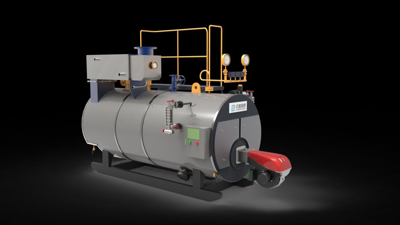 中瑞蒸汽鍋爐為機(jī)電一體化設(shè)備,它由鍋爐本體、燃燒器、電控柜、給水泵及管路閥門(mén)儀表等組成。機(jī)組配套了歐洲原裝進(jìn)口燃燒器,機(jī)組本體采用了臥式內(nèi)燃三回程濕背式的成熟結(jié)構(gòu)形式,燃料(油/氣)從燃燒器經(jīng)壓力霧化高速噴出,在爐膽內(nèi)呈微正壓燃燒,燃燒后的高溫?zé)煔庠跔t內(nèi)輻射換熱后轉(zhuǎn)向進(jìn)入第二回程煙管到前煙箱,再折轉(zhuǎn)180o度進(jìn)入第三回程煙管,經(jīng)后煙箱、冷凝器再排入煙囪進(jìn)入大氣。