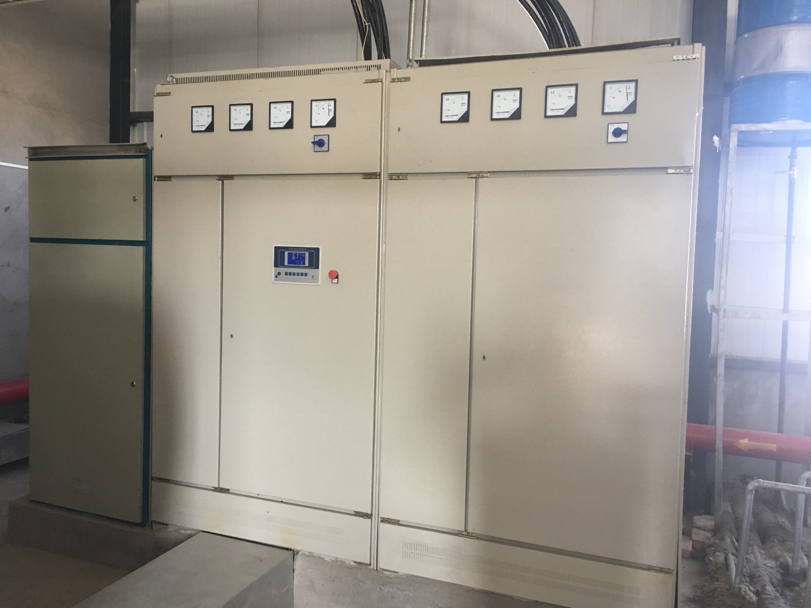 6、控制柜內(nèi)安全保護(hù)功能具備超溫、超壓、過載、短路、漏電、缺水、缺相等基本運行保護(hù)功能。若出現(xiàn)異常情況,機組應(yīng)發(fā)出聲光報警,同時自動分組切除加熱裝置,直至全部切除停機。控制面板為液晶顯示。